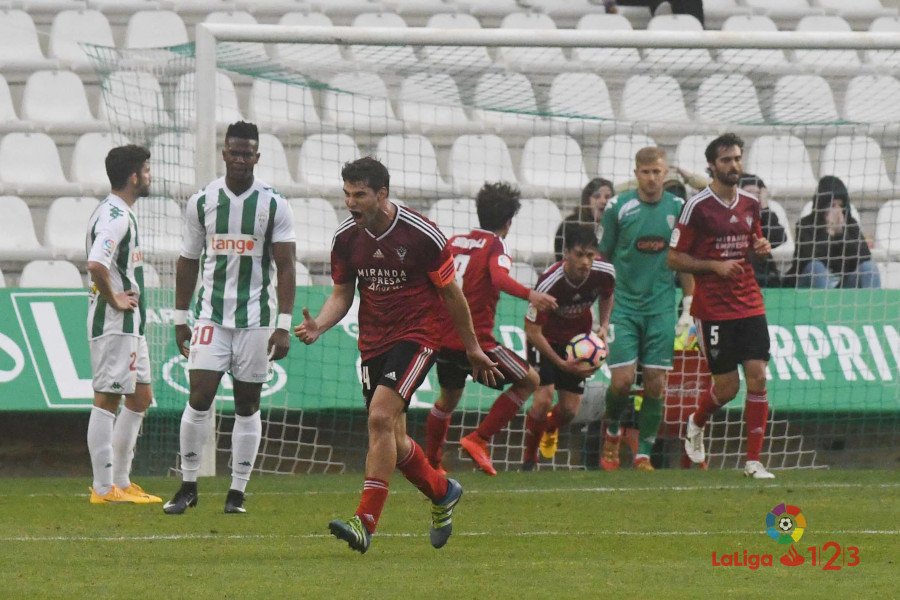 El Mirandés se llevó un punto de El Arcángel (1-1) gracias a un gol de Urko Vera en el minuto 93 que neutralizó el de Caro para un Córdoba que queda herido y podría acabar en puestos de descenso tras la trigésimo sexta jornada que concluye es lunes.